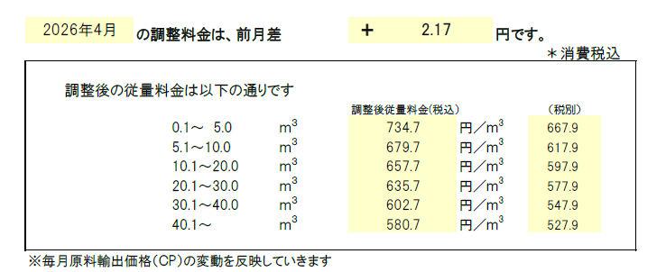 調整料金2026年4月